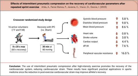 - This was the first study to investigate the impact of intermittent pneumatic compression on measures of cardiovascular recovery after an all-out intensity exercise session.