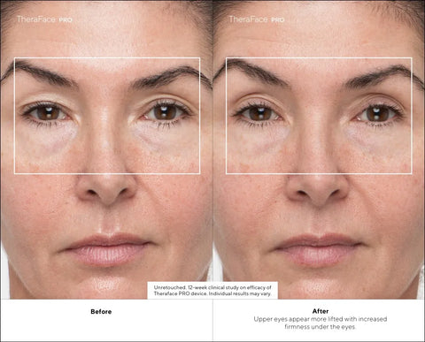 Following a 12-week TheraFace PRO protocol will effectively improve skin elasticity, the appearance and depth of fine lines and wrinkles around the eyes, radiance, and overall skin appearance.