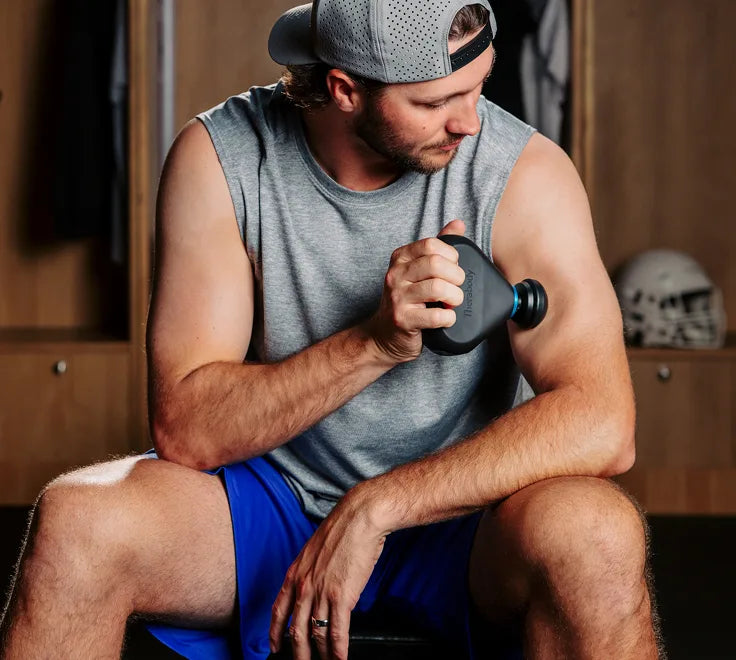 Josh uses the Theragun Mini Plus with quick 15-second bursts on his shoulders, glutes and lower back to stay loose and ready to perform every time he steps back on the field. With heated percussive massage that speeds up recovery, you can feel results faster and keep your body primed to perform.
