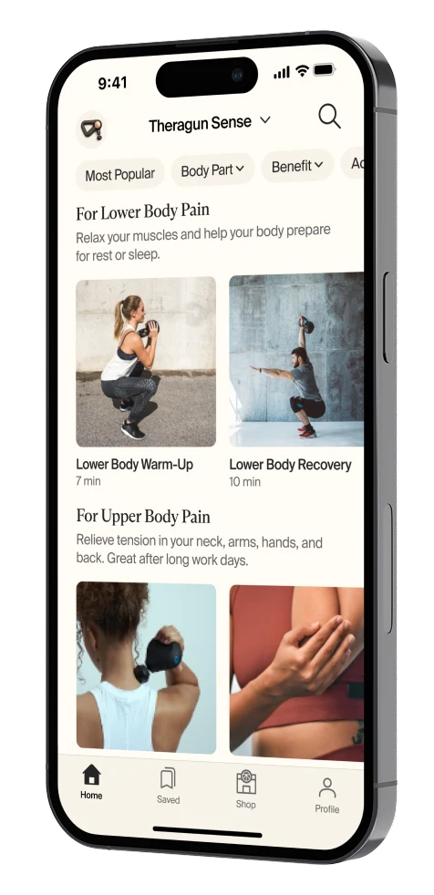 Theragun Sense delivers relaxing massage therapy to help relieve pain, ease soreness, reduce stress and improve sleep. It features an easy-to-use LCD screen that visually guides you through step-by-step massage routines.